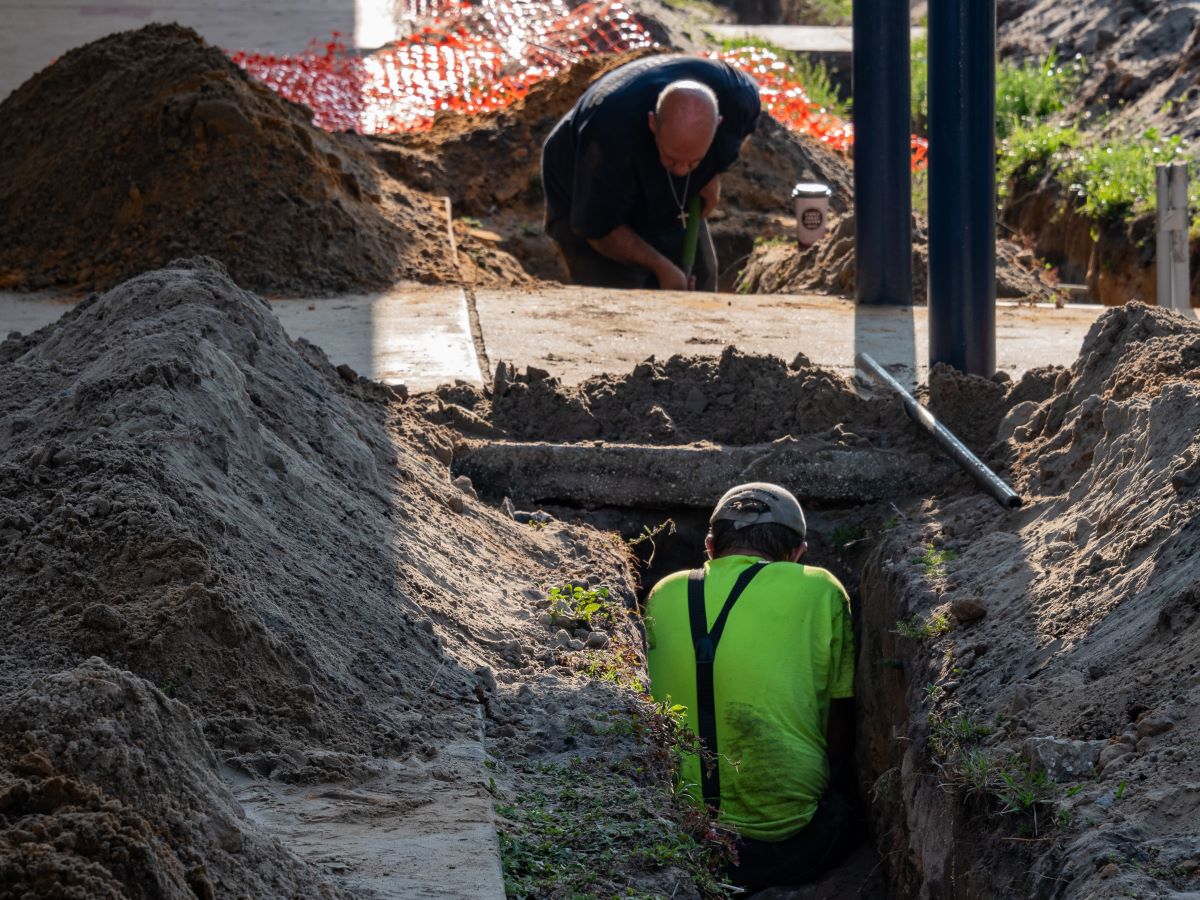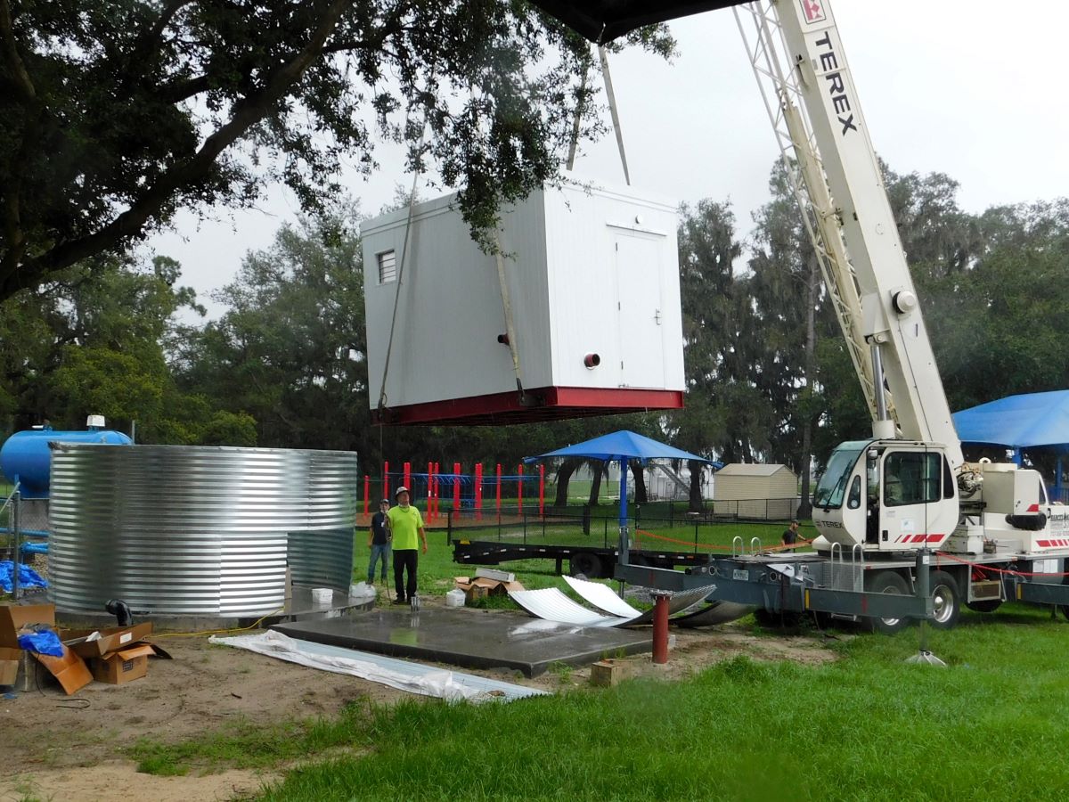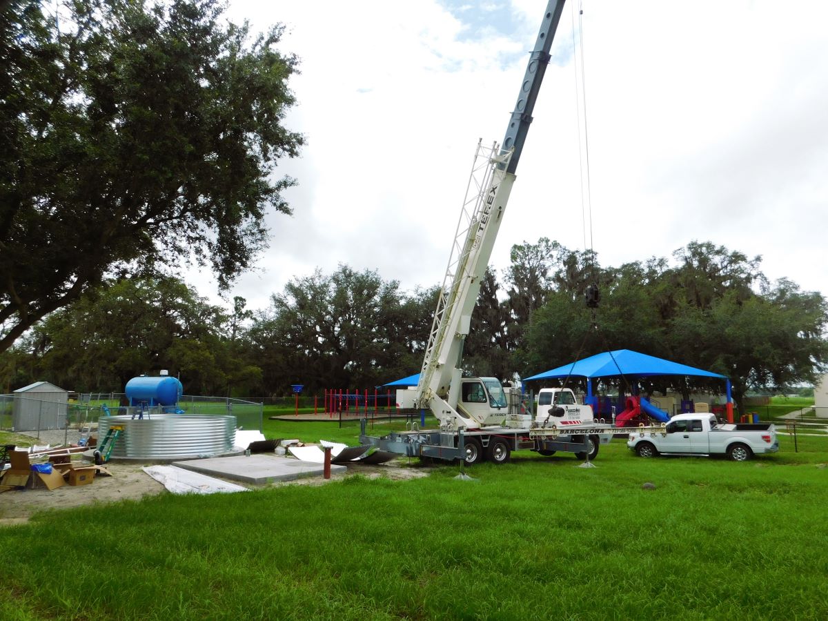 One of the challenges of installing a fire sprinkler system in this existing school is the lack of water supply from municipalities. Installation of a 25,000-gal water storage tank was required to supply water to the fire sprinkler system. Installtion of a fully equiped fire pump house will pull water from the tank and supply water to the newly installed sprinkler system in the newly renovated building at the school. All underground from the pump house to the school was also installed in this process.
